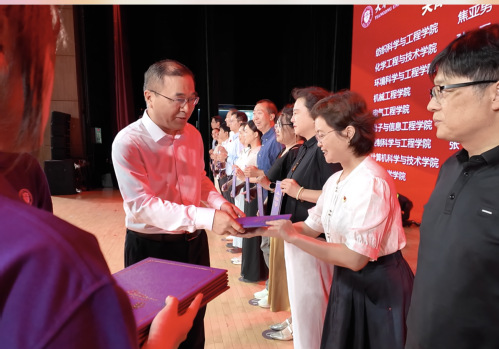 会上,纺织科学与工程学院焦亚男老师代表师德先进个人发言,分享了自己科技报国的经历和感受。辅导员代表奉献了精彩节目《哏儿导》,展示了学生工作队伍的奉献与活力。“天津郑氏漆器制作技艺”传承人、艺术学院郑勇老师分享了其将中国千年非遗技艺带入上合峰会现场的精彩瞬间。国家重大人才项目入选者王海涛老师分享了其扎根天工、敢为人先、勇攀高峰的励志故事。