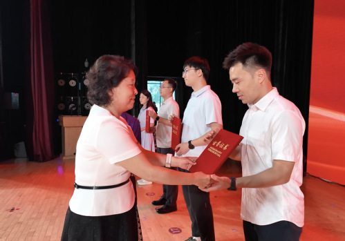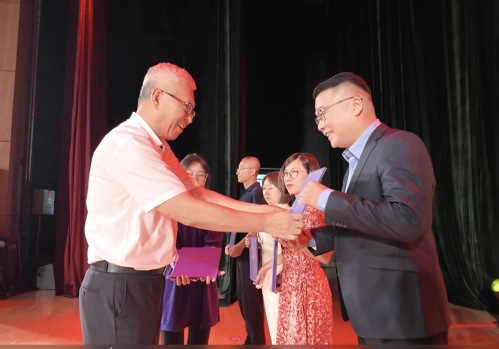 大会进行了退休教师集体荣退仪式暨新入职教师宣誓仪式。新入职教师为荣退教师献上鲜花和纪念折扇,荣退教师为新入职教师佩戴校徽。随后,新入职教师面向国旗、校旗庄严宣誓,表达了为党的教育事业、为学校发展贡献智慧和力量的决心和信心。原电子与信息工程学院∕集成电路学院党委书记黄洁作为退休教师代表,回顾了与学校共同进步成长的奋斗历程和感悟,并对青年教师提出殷切寄语。